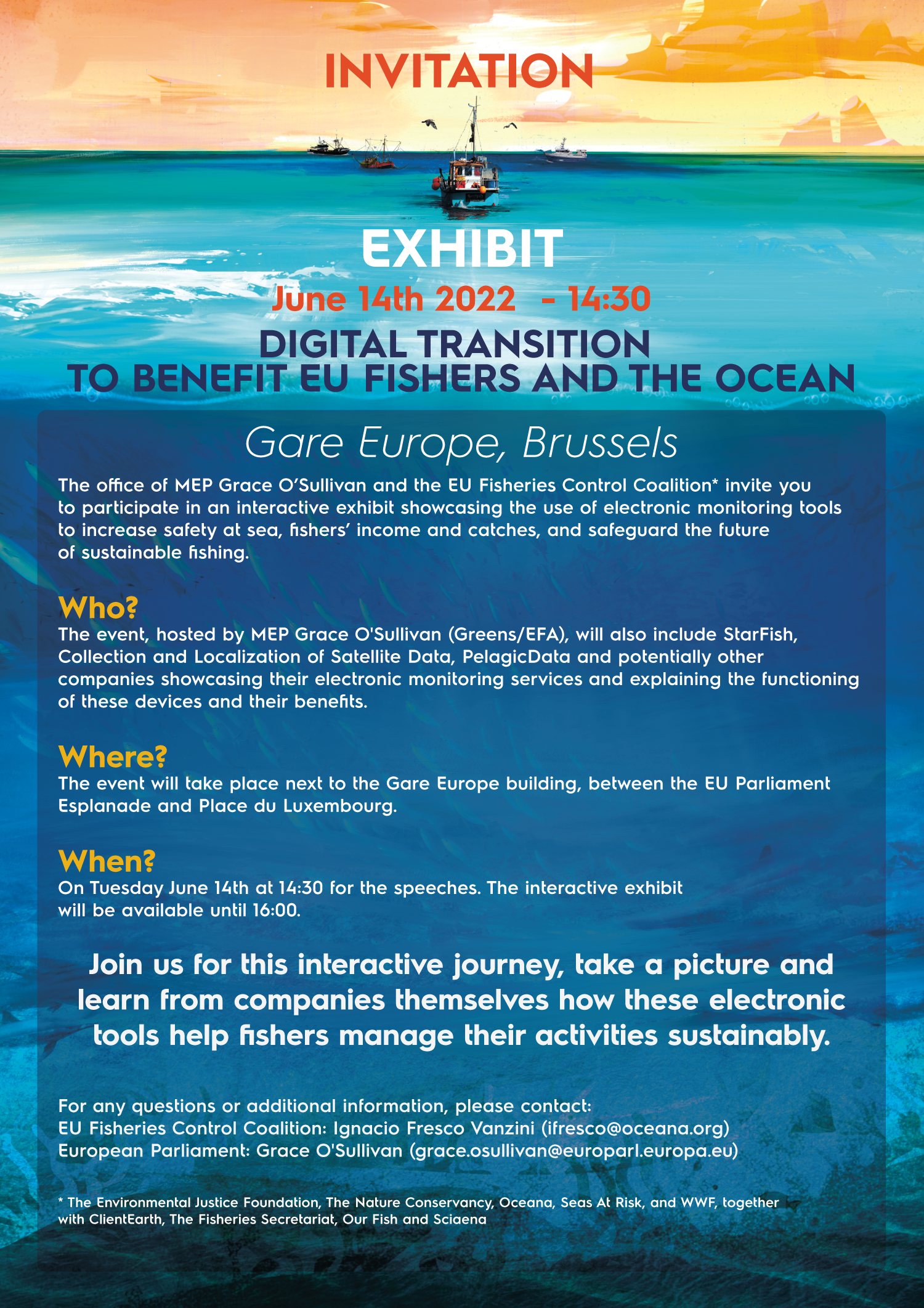 Who? The event, hosted by MEP Grace O’Sullivan, will count with the participation of companies and organisations, including StarFish, Collection and Localization of Satellite Data, Pelagic Data and Archipelagos, that will showcase their electronic monitoring services and explain the functioning of these devices and their benefits.